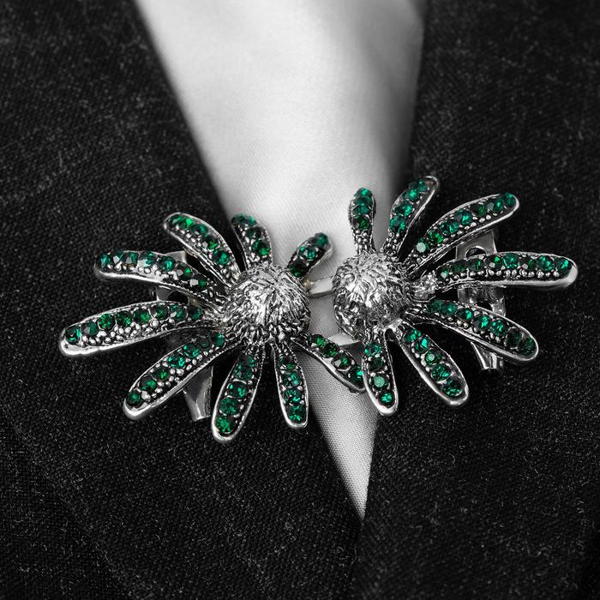 • Зажим для кардигана "Цветы" ромашки, цвет зелёный, цвет серебристый