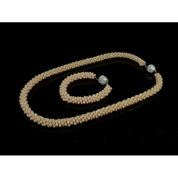 Бусы, браслет из циркона "Жгут" 1см цв.кремовый , 60см, 20см