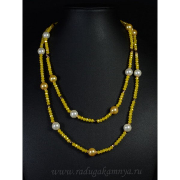• Бусы-браслет 100см из циркона с майоркой, желтый