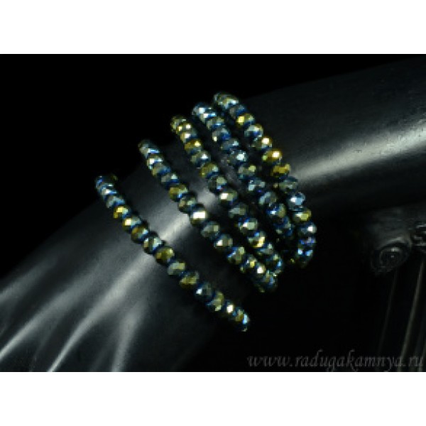 Бусы-браслет на резинке из циркона 6мм золотисто-зеленый, 84см