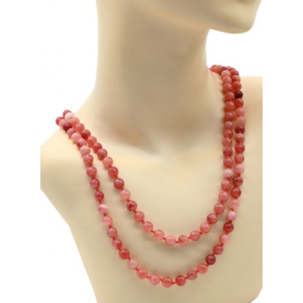 Бусы 110-120см из кальцита тонированного шарик 8мм цвет клубничный