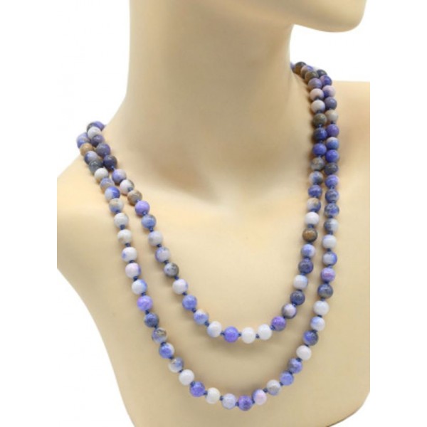 Бусы 110-120см из кальцита тонированного шарик 8мм цвет васильковый