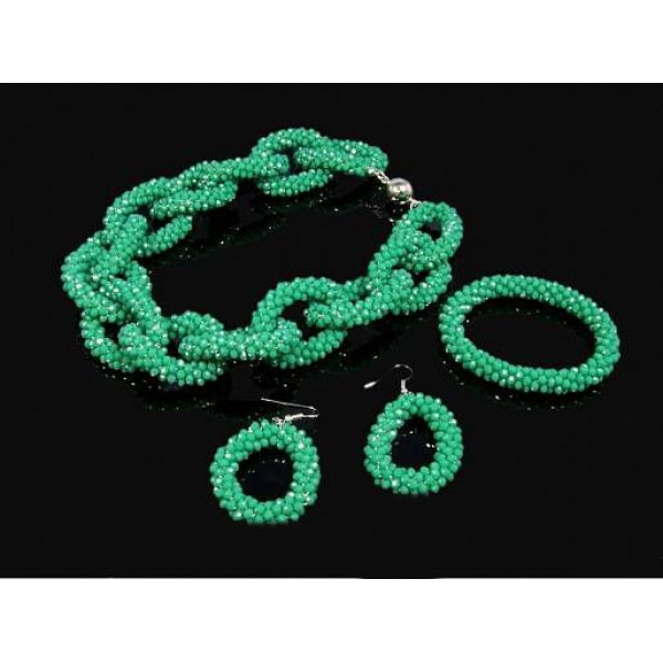 • Бусы, браслет, серьги из циркона "Цепь" цв.зеленый, 48см
