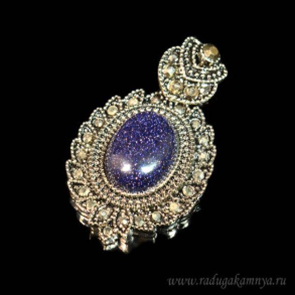 Кулон 28*50мм с авантюрином синим и марказитами (иск.)