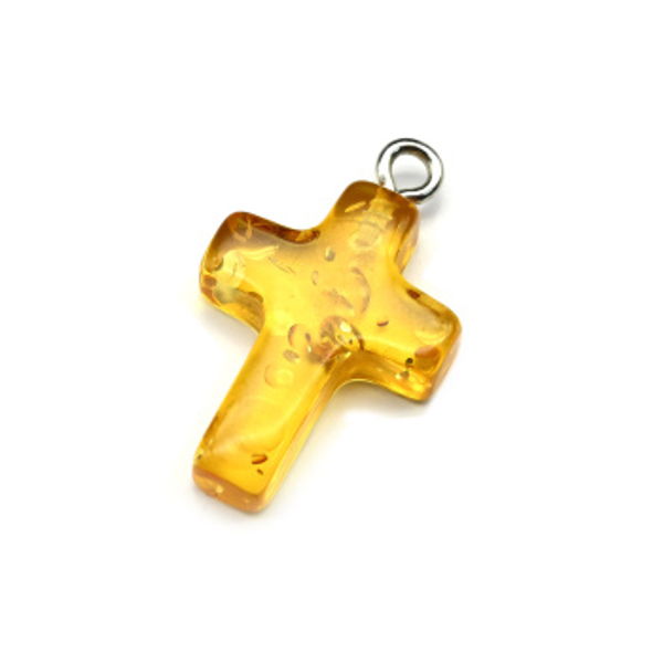 Крестик маленький на шею из янтаря 15*20мм цвет медовый (иск.)