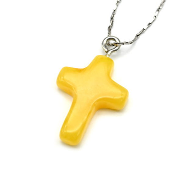 • Крестик маленький на шею из янтаря 15*20мм цвет молочно-медовый (иск.)