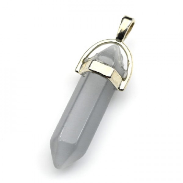 Кристалл - маятник из кошачьего глаза 13*10*41мм цв.серый (иск.)