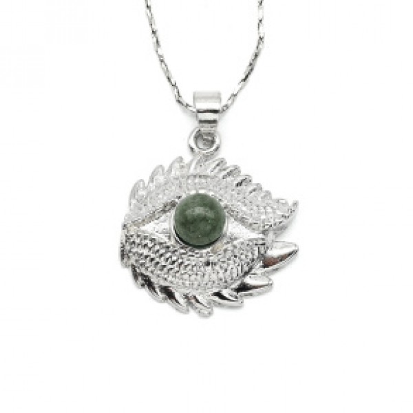 Подвеска Глаз дракона с яшмой зеленой 19*20мм.
