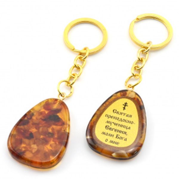 Брелок из янтаря с молитвой к Святой преподобно-мученице Евгении 30*40мм