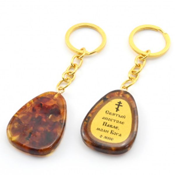 Брелок из янтаря с молитвой к Святому апостолу Павлу 30*40мм