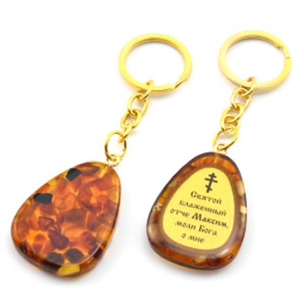 Брелок из янтаря с молитвой к Святому блаженному Максиму 30*40мм