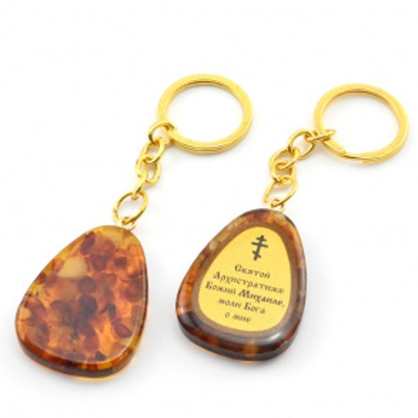 Брелок из янтаря с молитвой к Святому Михаилу 30*40мм