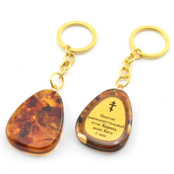 • Брелок из янтаря с молитвой к Святому равноапостольному Кириллу 30*40мм