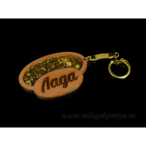 • Брелок именной из дерева с янтарём "Лада", 71*48мм