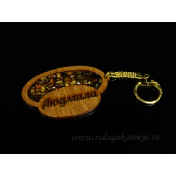 Брелок именной из дерева с янтарём "Людмила", 71*48мм