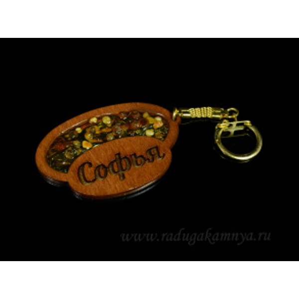 • Брелок именной из дерева с янтарём "Софья", 71*48мм