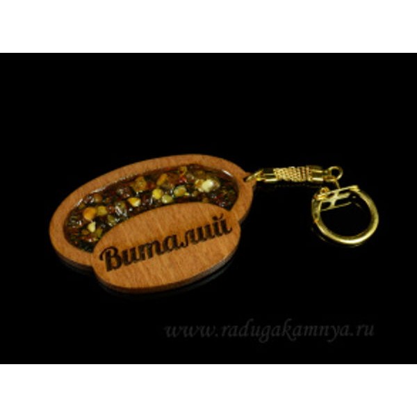 • Брелок именной из дерева с янтарём "Виталий", 71*48мм