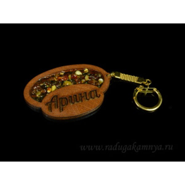 Брелок именной из дерева с янтарём "Арина", 71*48мм