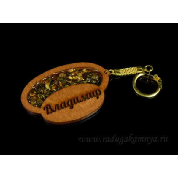 • Брелок именной из дерева с янтарём "Владимир", 71*48мм