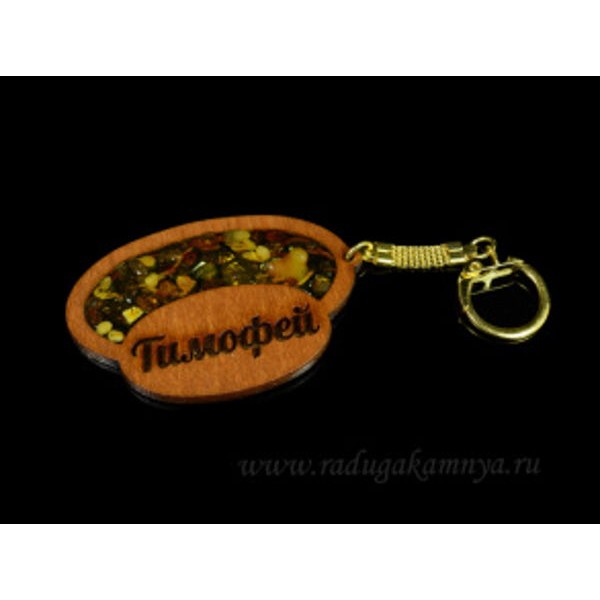 • Брелок именной из дерева с янтарём "Тимофей", 71*48мм