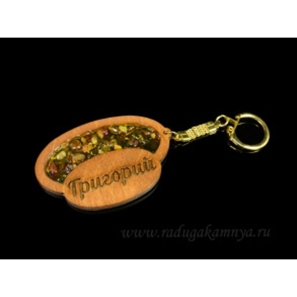 • Брелок именной из дерева с янтарём "Григорий", 71*48мм