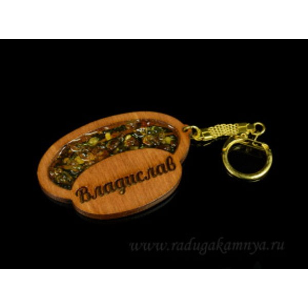Брелок именной из дерева с янтарём "Владислав", 71*48мм