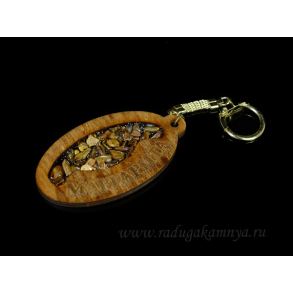 Брелок именной из дерева с тигровым глазом "Маргарита", 78*44мм