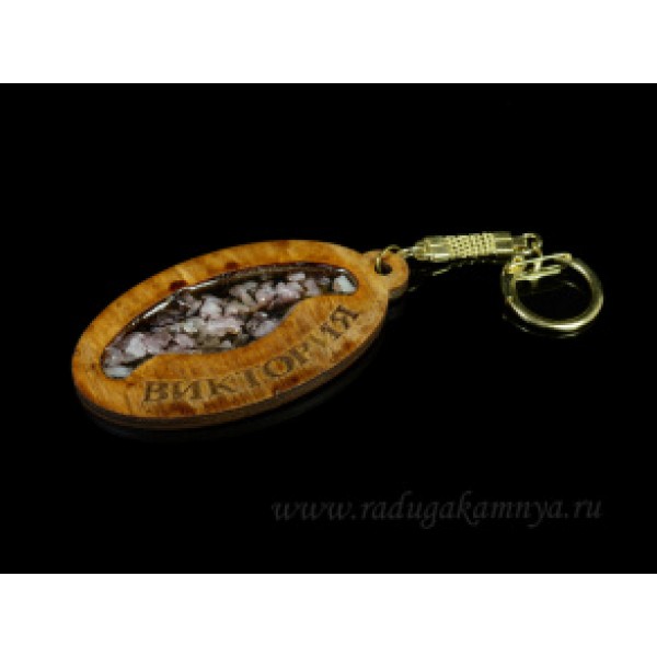 Брелок именной из дерева с розовым кварцем "Виктория", 78*44мм.