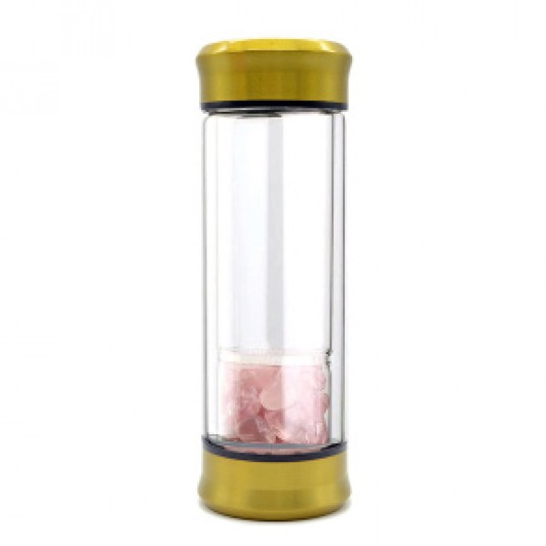 Бутылка для воды с галтовкой розовый кварц 70*70*200мм