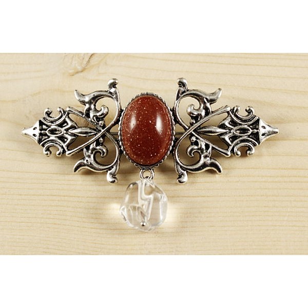 Заколка из граната (кабошон-мозаика) и авантюрина ..