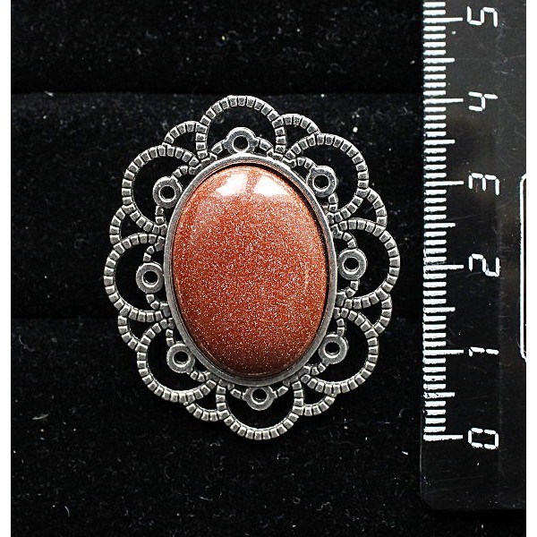 Брошь из авантюрина красного (синт.), овал 25х18мм..