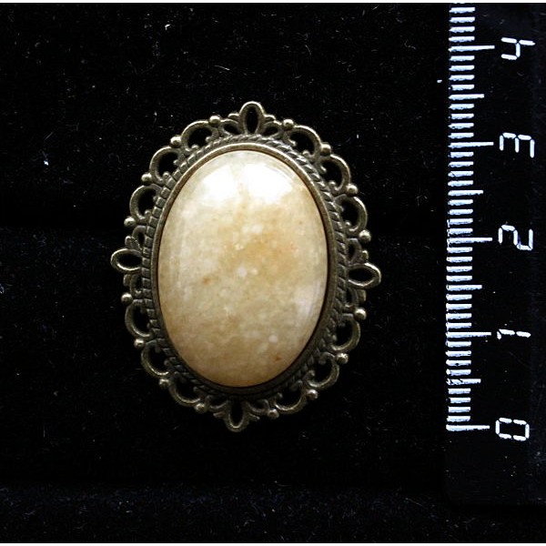 Брошь из яшмы песочной, овал 25х18мм, оправа с узором цвет бронза