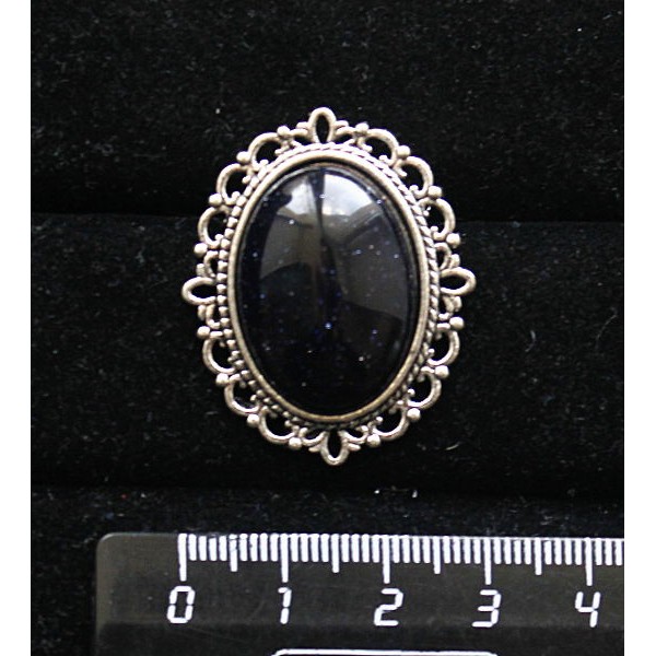 Кольцо с авантюрином синим (синт.), овал 25х18мм, безразмерное (литая оправа)
