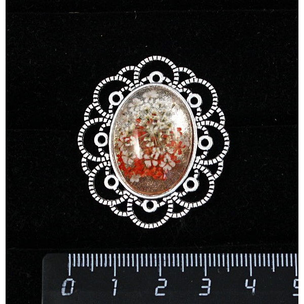 Кулон из c кабошоном из пластика "два цветка", цвет красный, овал 25х18мм, филигрань