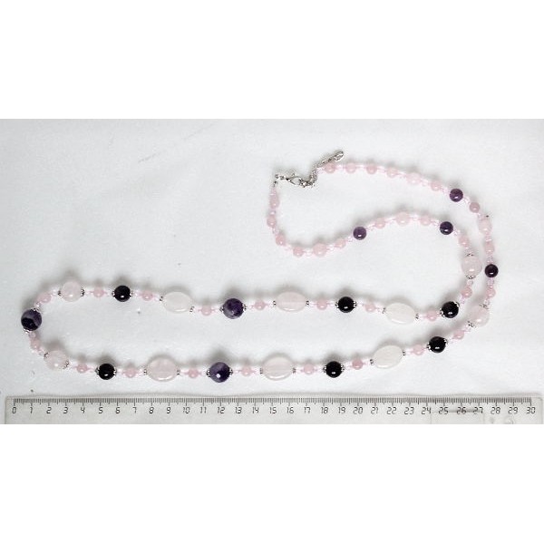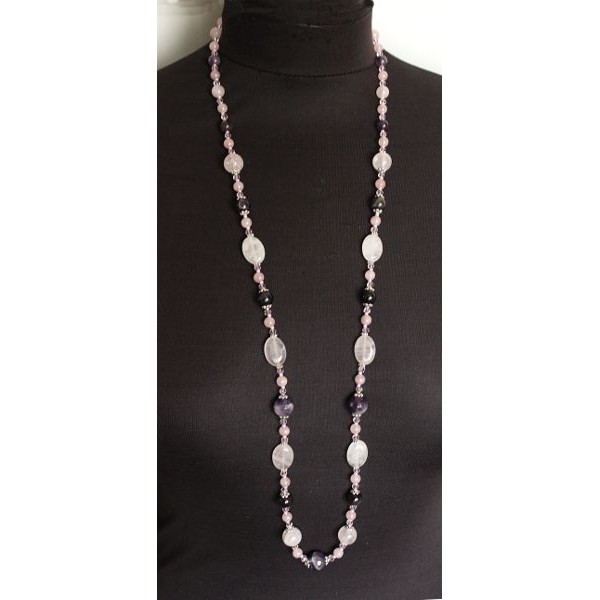 Бусы длинные из розового кварца и аметиста, овалы 18х13мм, шарики 12мм, 10мм, 8мм и 6мм + хрусталь