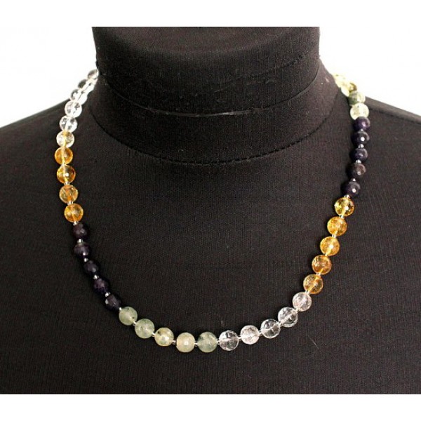 Бусы из аметиста, горного хрусталя, пренита и цитрина, шарик 8мм огранка