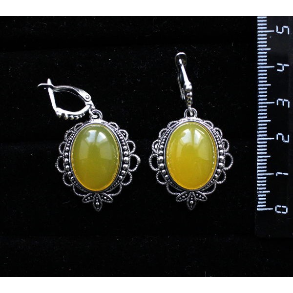 Cерьги из агата желтого (тонировка), овал 18х13мм, оправа "трилистник", швензы посеребрение