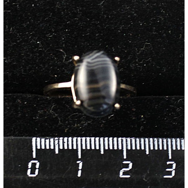 • Кольцо c агатом чёрным,  овал 14х10мм