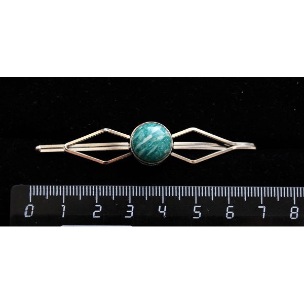 Заколка из гелиотиса (иск.) и амазонита, 6см,..