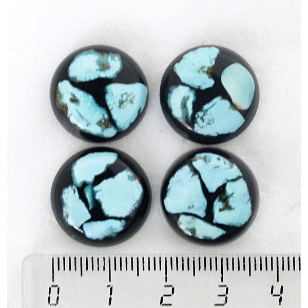 Бирюза натуральная, кабошон мозаика круг 18мм, черный фон