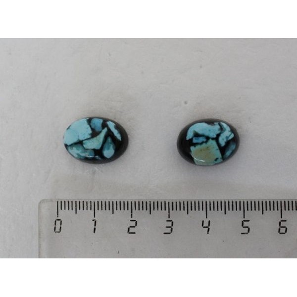 Бирюза натуральная, кабошон мозаика овал 18х13мм, черный фон