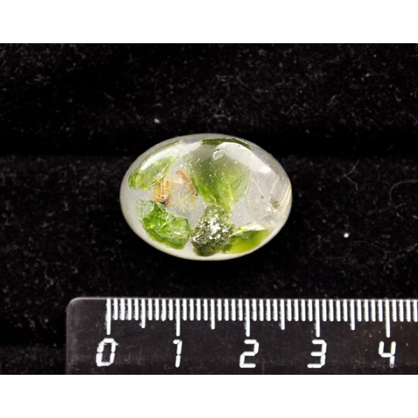 Кварц-волосатик темный, зеленые волосы, кабошон ов..