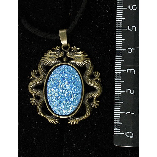 • Кулон c кабошоном из пластика "щетка кристаллов",  цвет морская волна, овал 25х18мм, оправа цвет бронза "2 дракона"