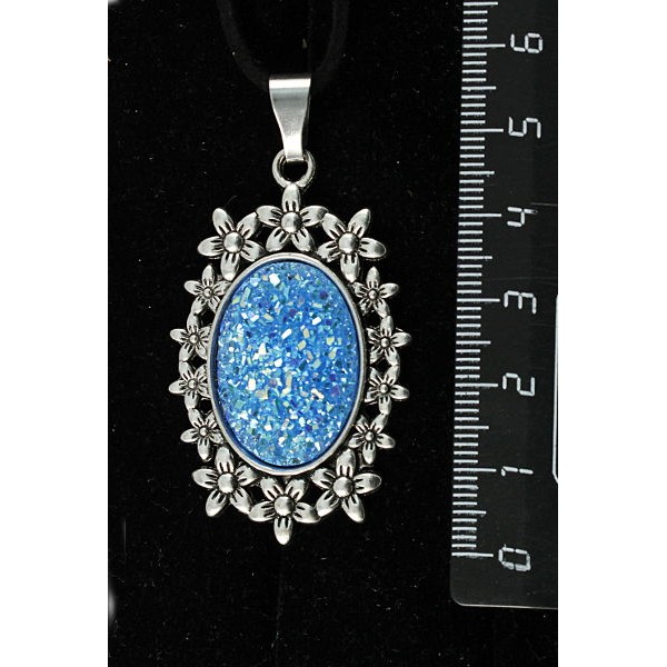Кулон из агата синего (тонировка) "клумба", овал 25х18мм