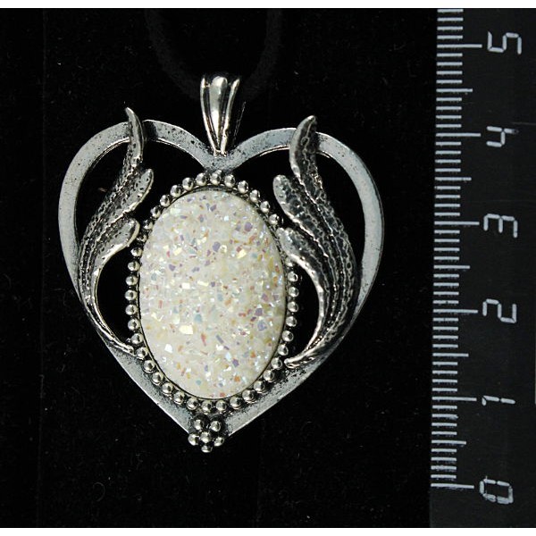 Кулон c кабошоном из пластика "щетка кристаллов", цвет белый, овал 25х18мм, оправа "сердце с крыльями"