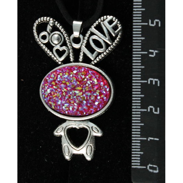 Кулон c кабошоном из пластика "щетка кристаллов", цвет малиновый, "зайчик", овал 25х18мм
