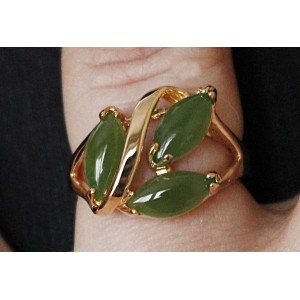 Кольцо с зеленым кошачьим глазом (синт.) "большой рис"
