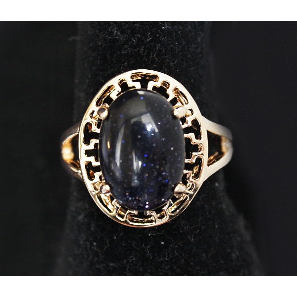 Кольцо с авантюрином синим (имитация), овал 18x13,..