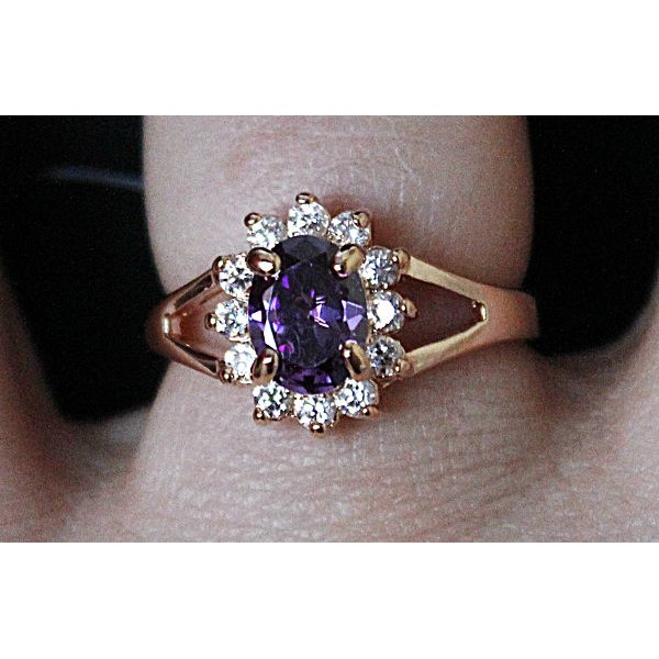 Кольцо с аметистом (синт.) "малый овал в цирконах"