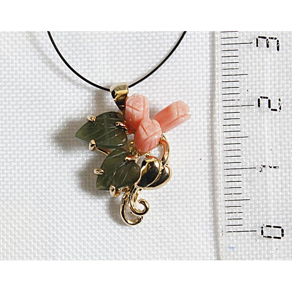 Кулон из коралла и нефрита с сердечком "3 розы 2 листа сердечко"